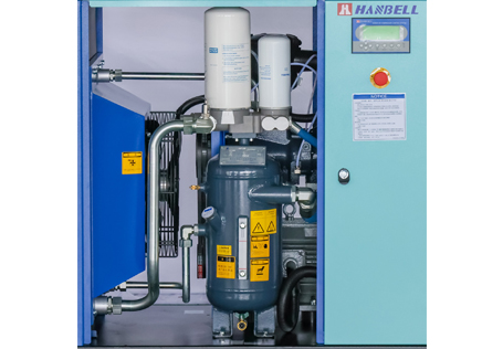 2. Adopt Hanbell own AB series single-stage air end; belt drive to achieve easy pressure adjustment; equipped with high efficiency and reliability motor;
